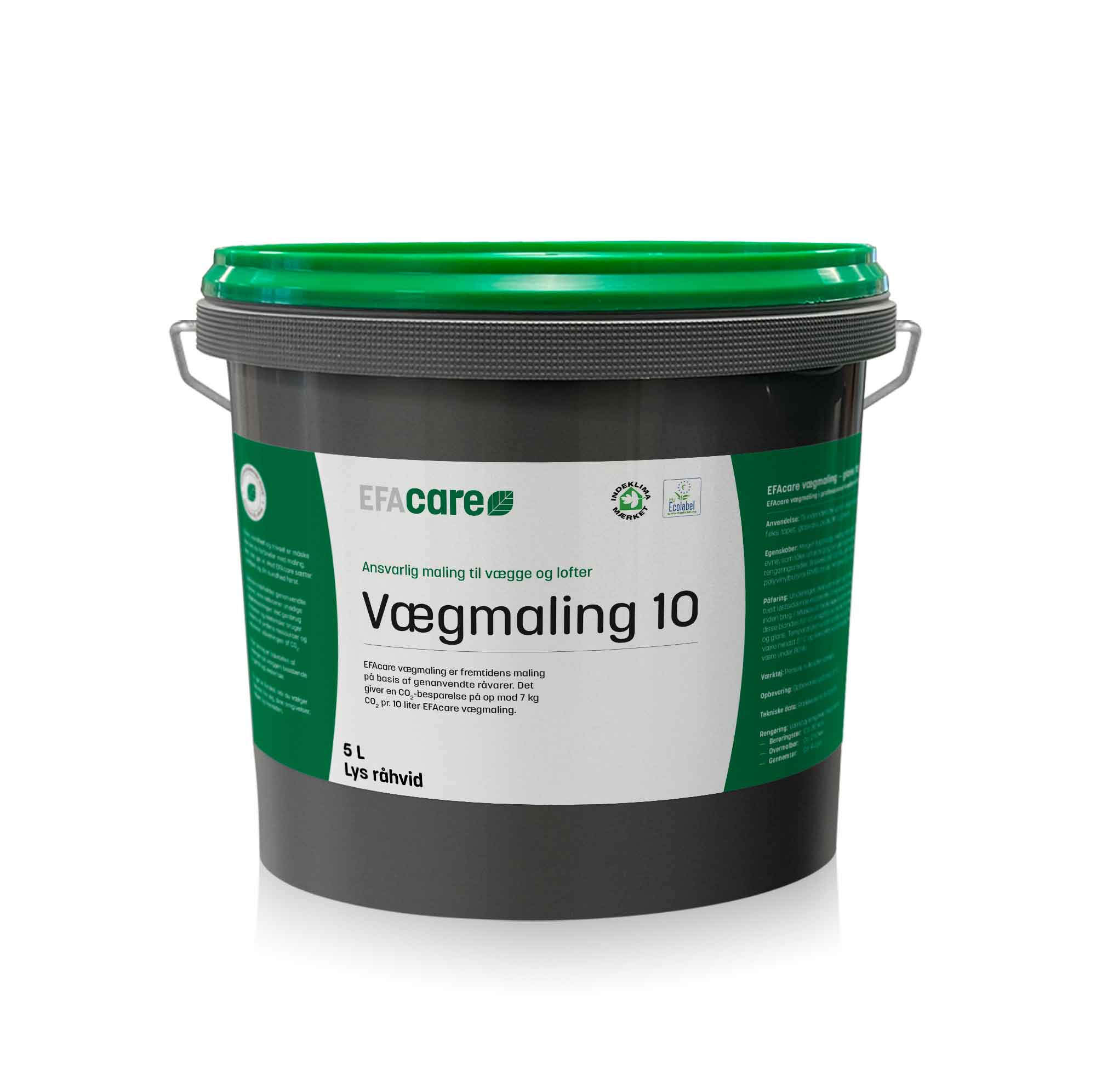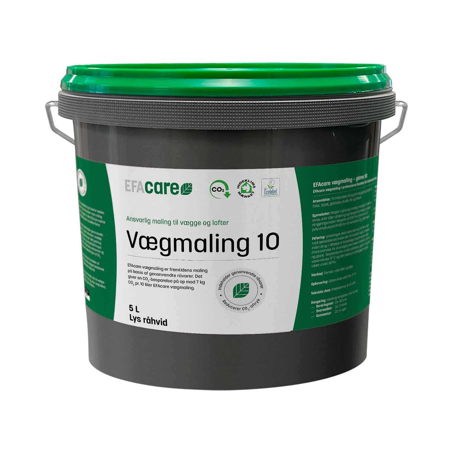 EFAcare vægmaling findes i Lys råhvid i glans 5 og glans 10, samt fås i henholdsvis 5 og 10 liter.