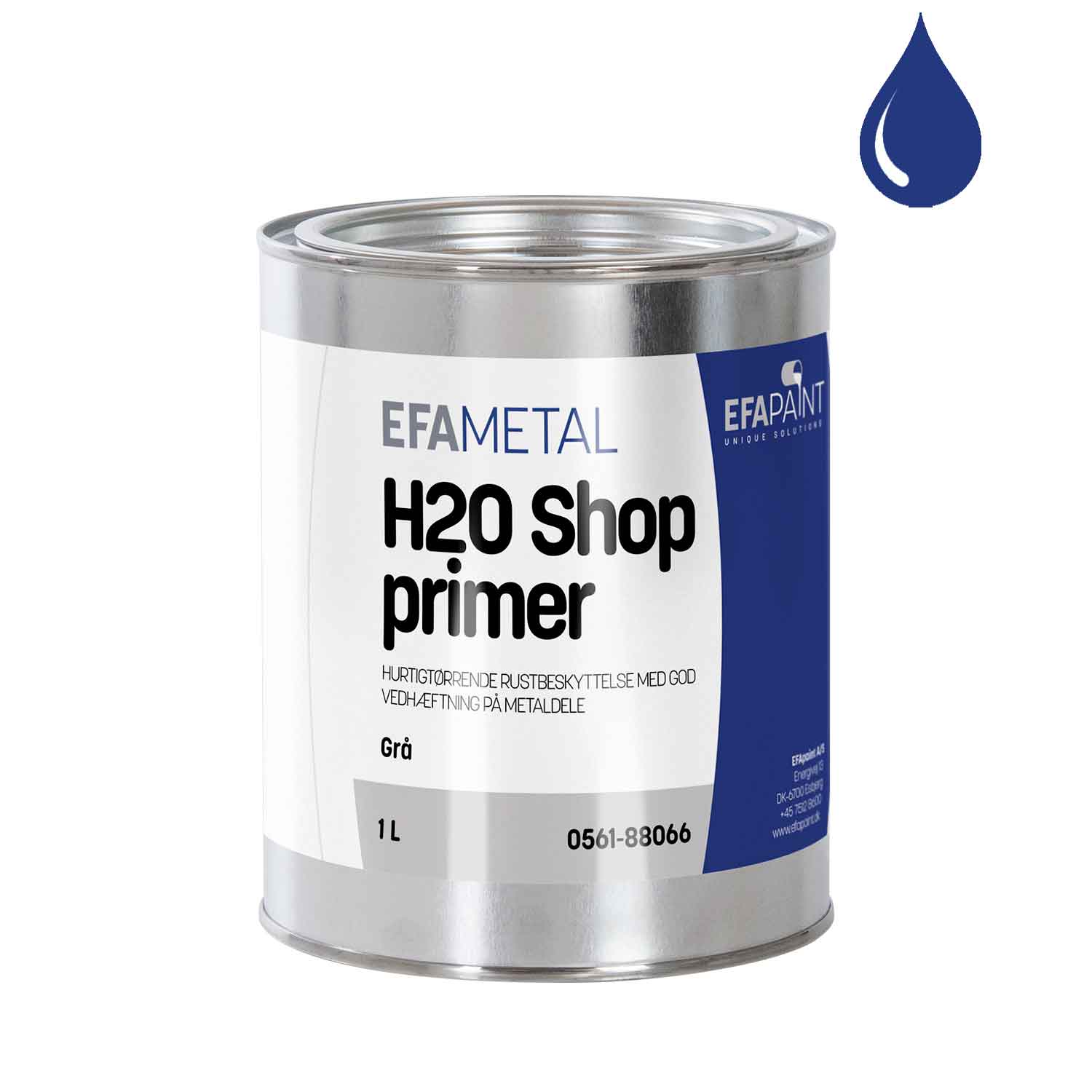 EFAmetal H2O Shopprimer serie 0561 er en meget hurtigtørrende primer med god vedhæftning til alle slags metaller samt aluminium og galvaniseret stål. Er især anvendelig hvor der senere skal svejses. EFAmetal H2O Shopprimer er en vandfortyndbar primer som er på basis af polymerisationsharpiks. Primeren kan fortyndes med vand.