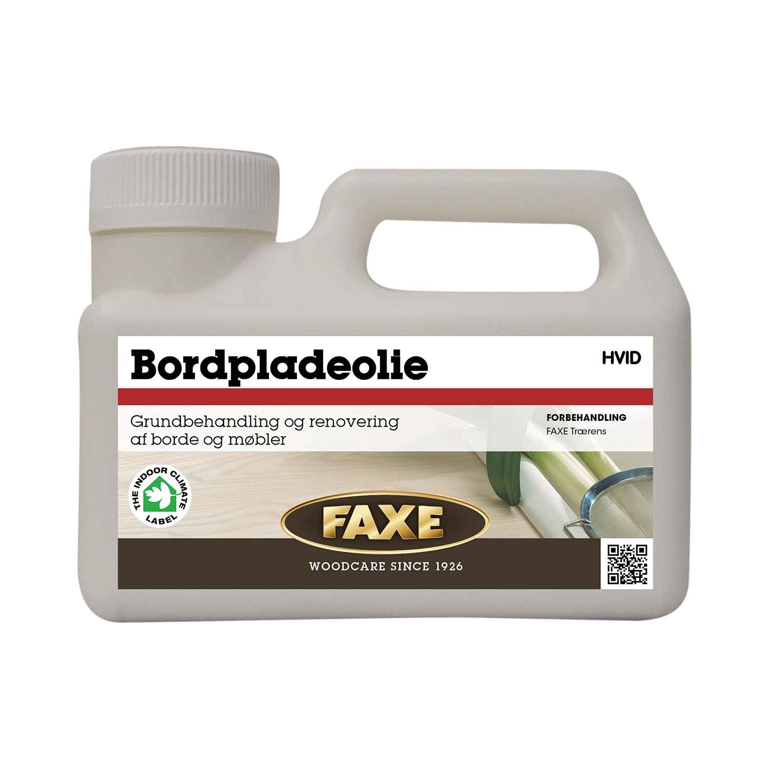 FAXE Bordpladeolie er specielt udviklet til nem grundbehandling, renovering og pleje af bordplader, møbler o. lign. der skal være vandafvisende og slidstærke. FAXE Bordpladeolie er på basis af rene naturolier.