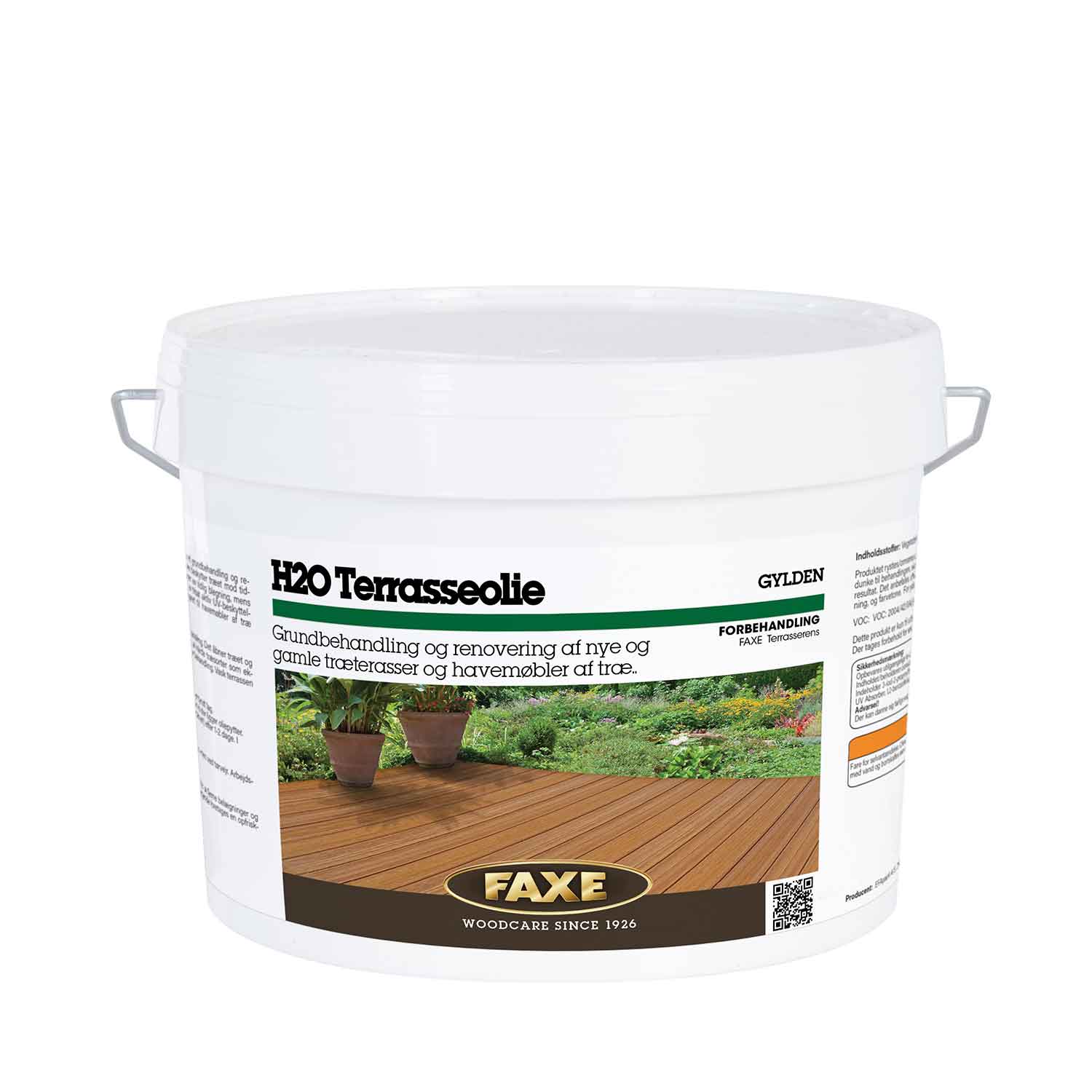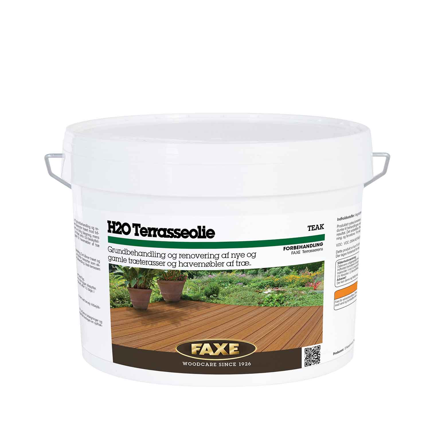 FAXE H2O Terrace oil is a water-dilutable wood oil based on natural oils. The product contains UV protection. FAXE H2O Terrace oil is used for the treatment and renovation of cleaned wooden terraces and wooden garden furniture and protects against the weather and gives the wood a water-repellent surface. At the same time, the natural glow and color of the wood is maintained. FAXE H2O Terrace oil is available in the colors Natural, Teak and Golden in 2.5 liter packaging.